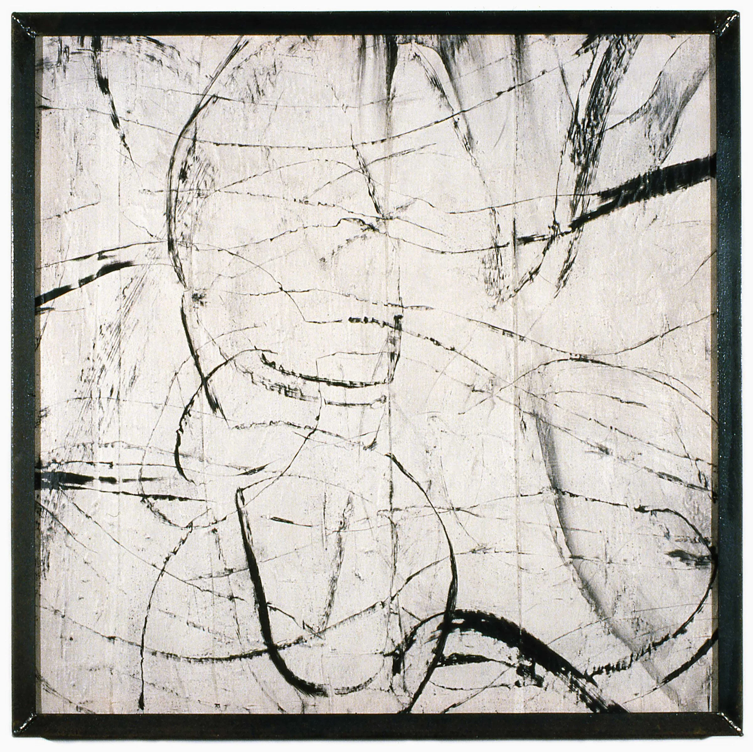 Trace 897, 1996. Acrylic resist on stretched paper with fiberglass covering and steel frame, 30 x 30”.