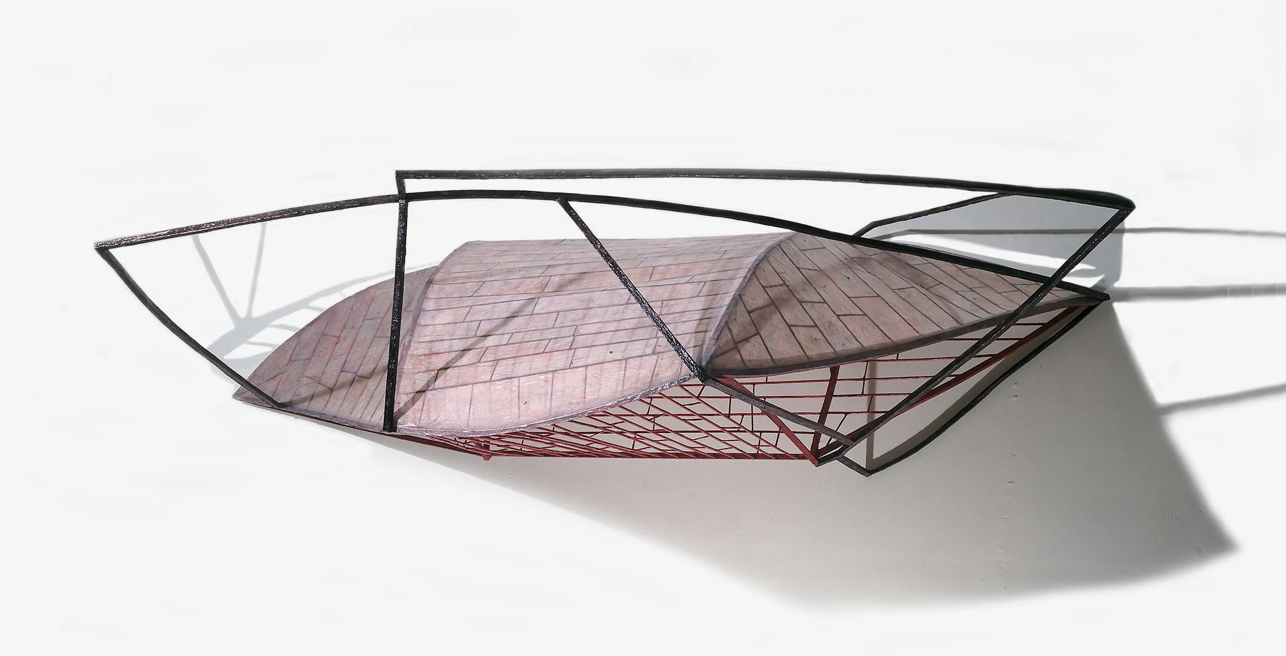 Teahouse 395, 1995. Painted steel, plywood, and natural wood with shellac, 63 x 28 x 27”.
