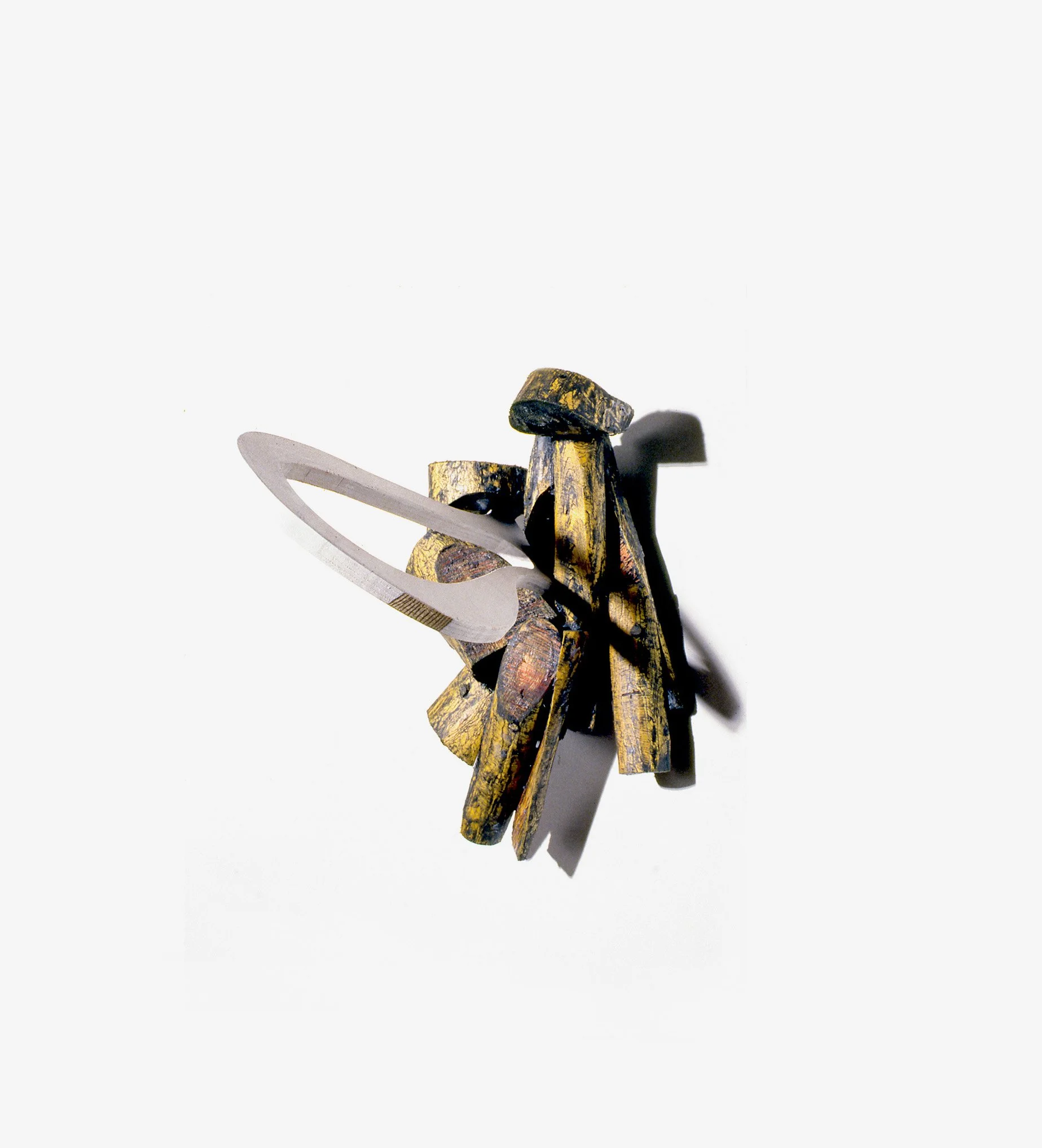 Consort 491, 1991. Acrylic and graphite on plywood with conifer wood coated with wax, acrylic, and graphite, 15 x 8 x 4”.