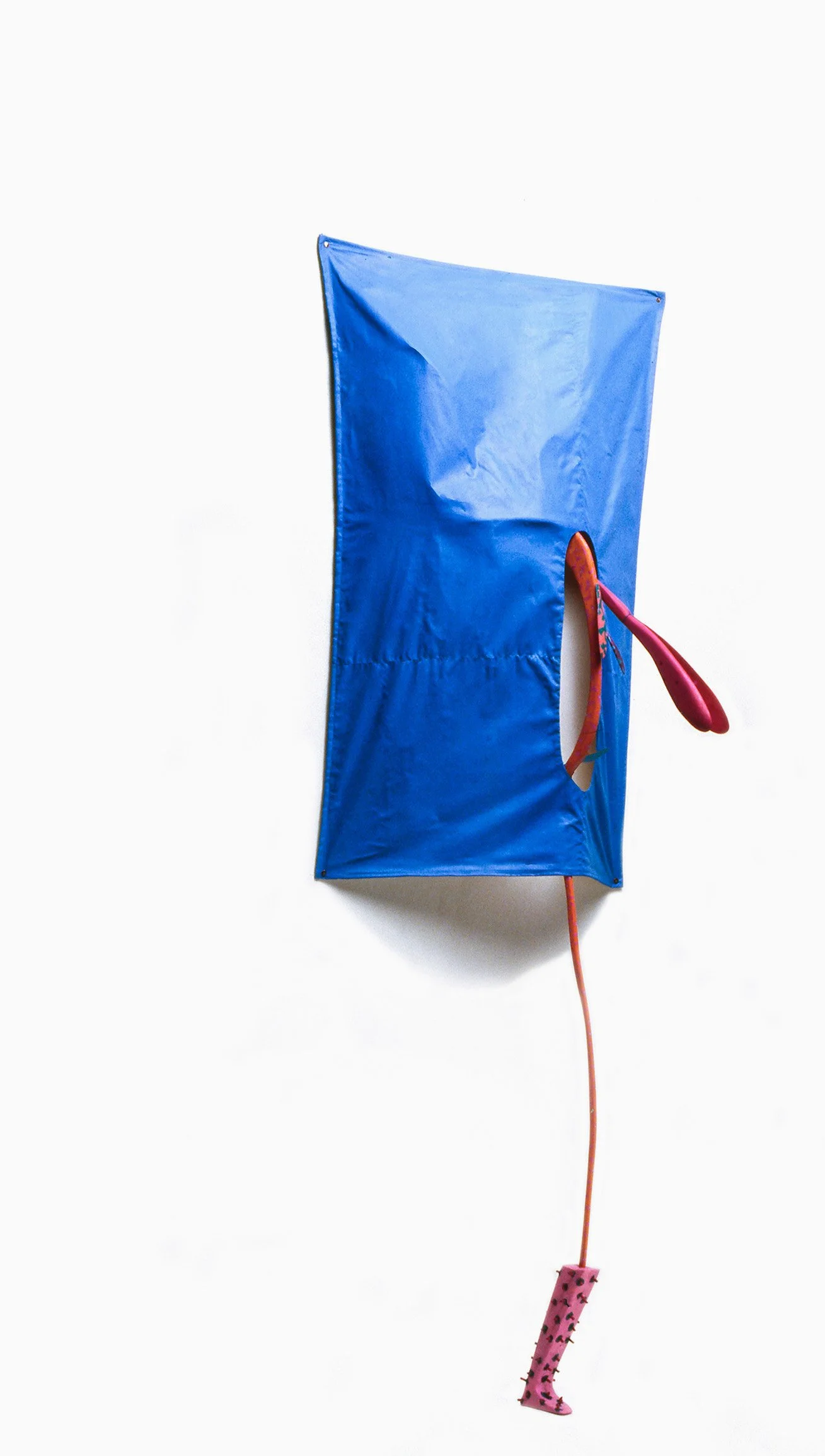 Cloakwing 382, 1982. Umbrella nylon and plywood, 69 x 49 x 4”.