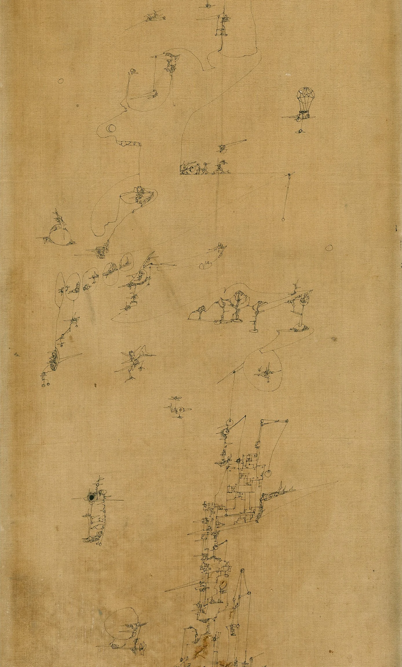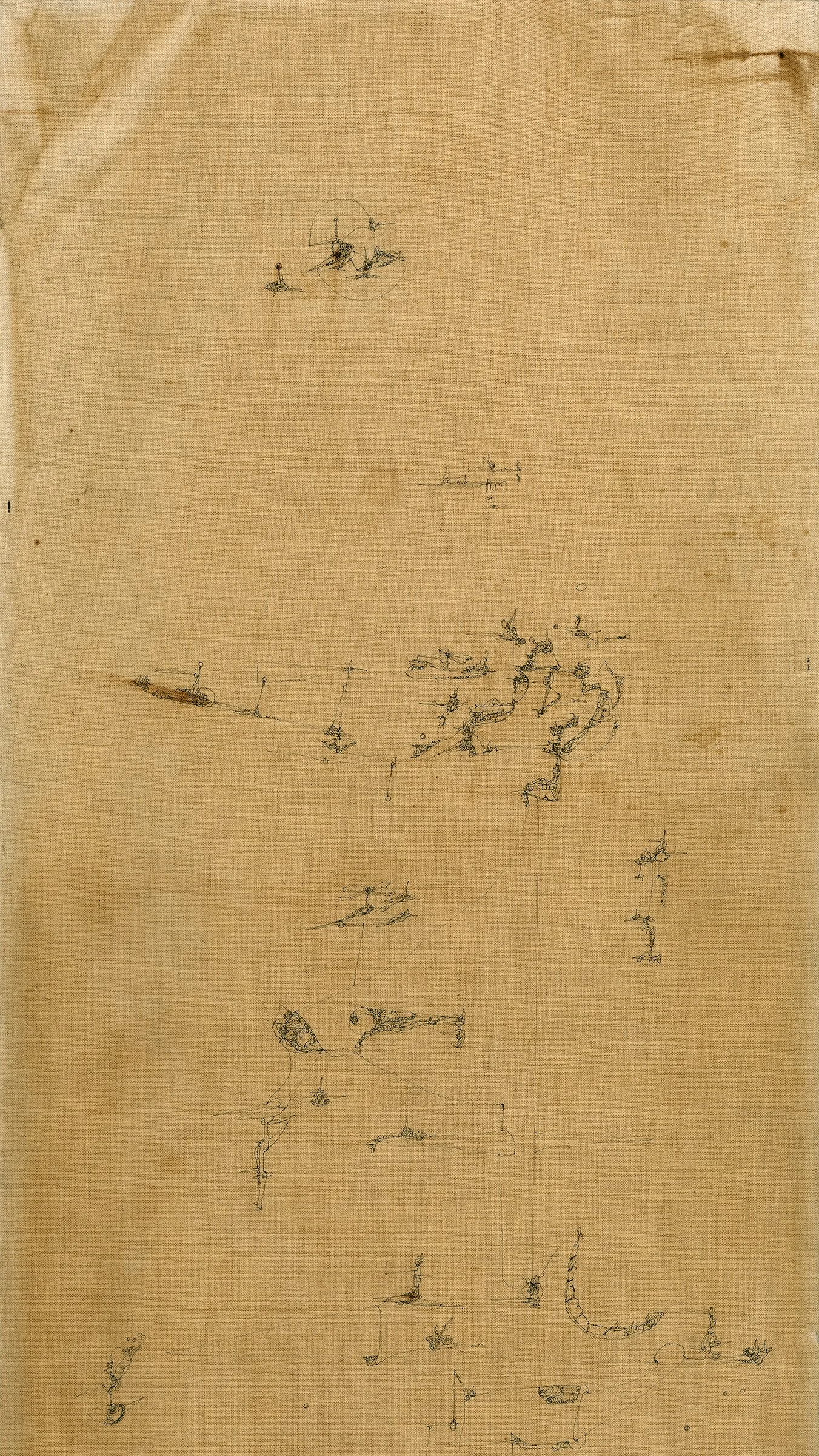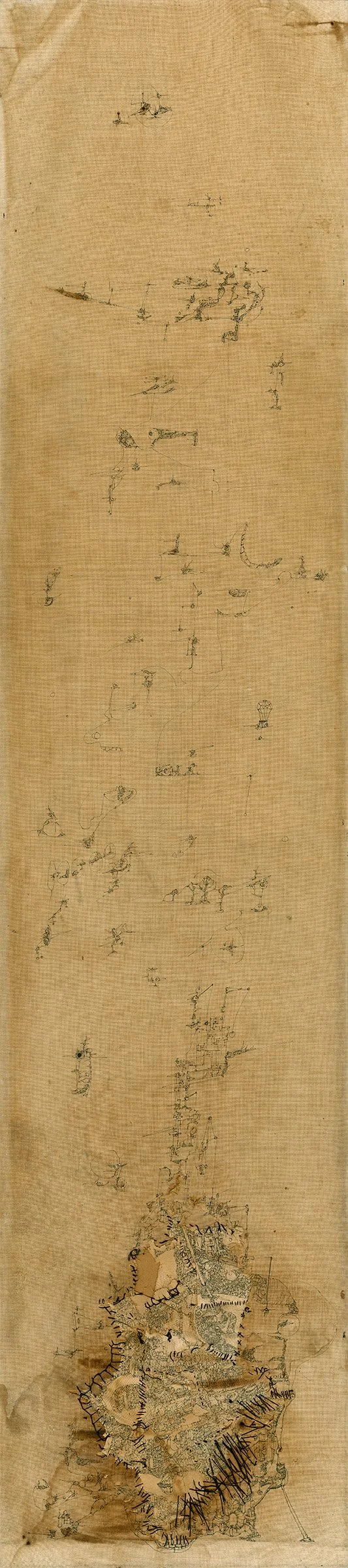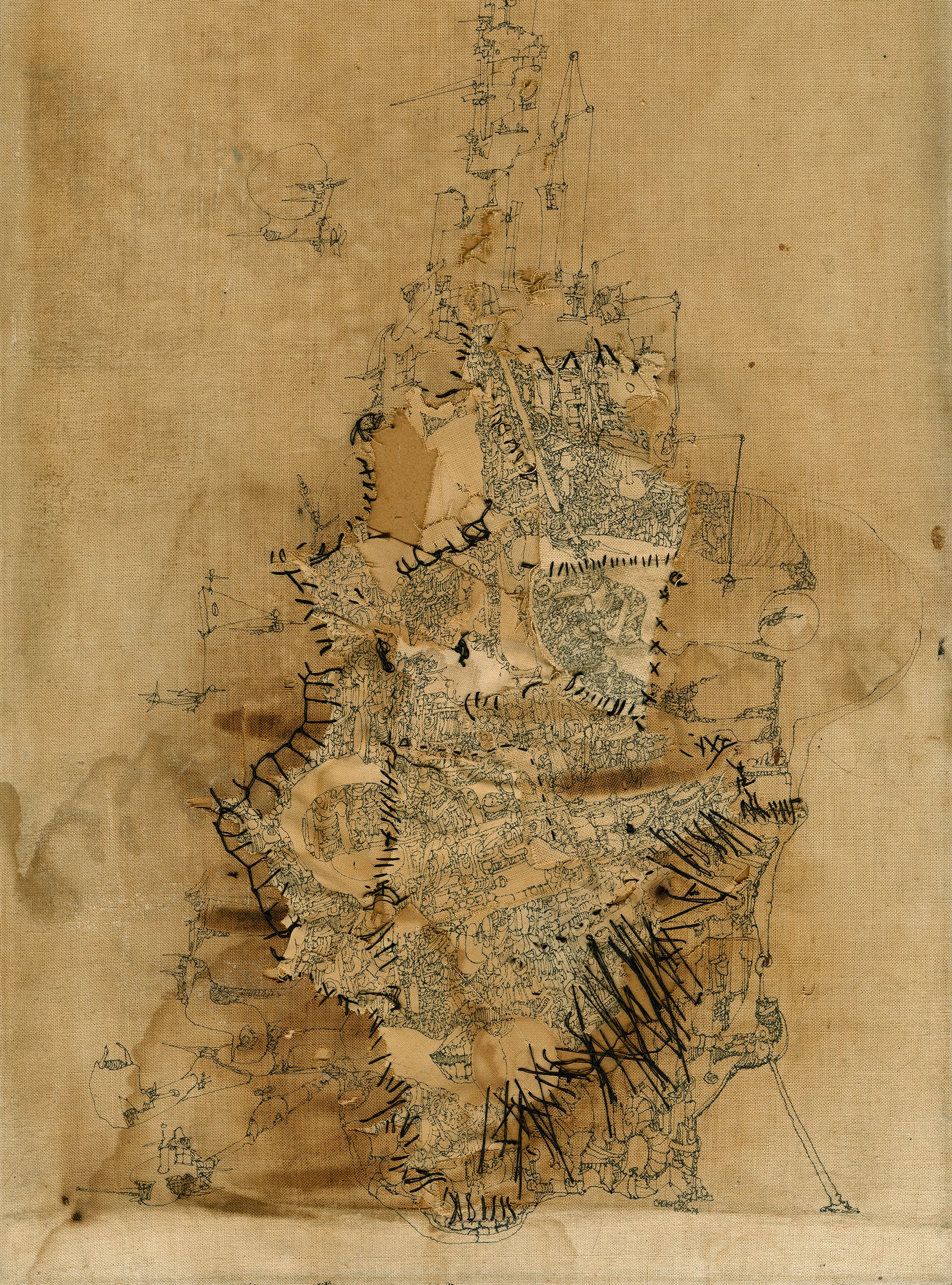 Tower of Babel, 1972-74. Ink on stitched ironing board cover, 54 x 12”.