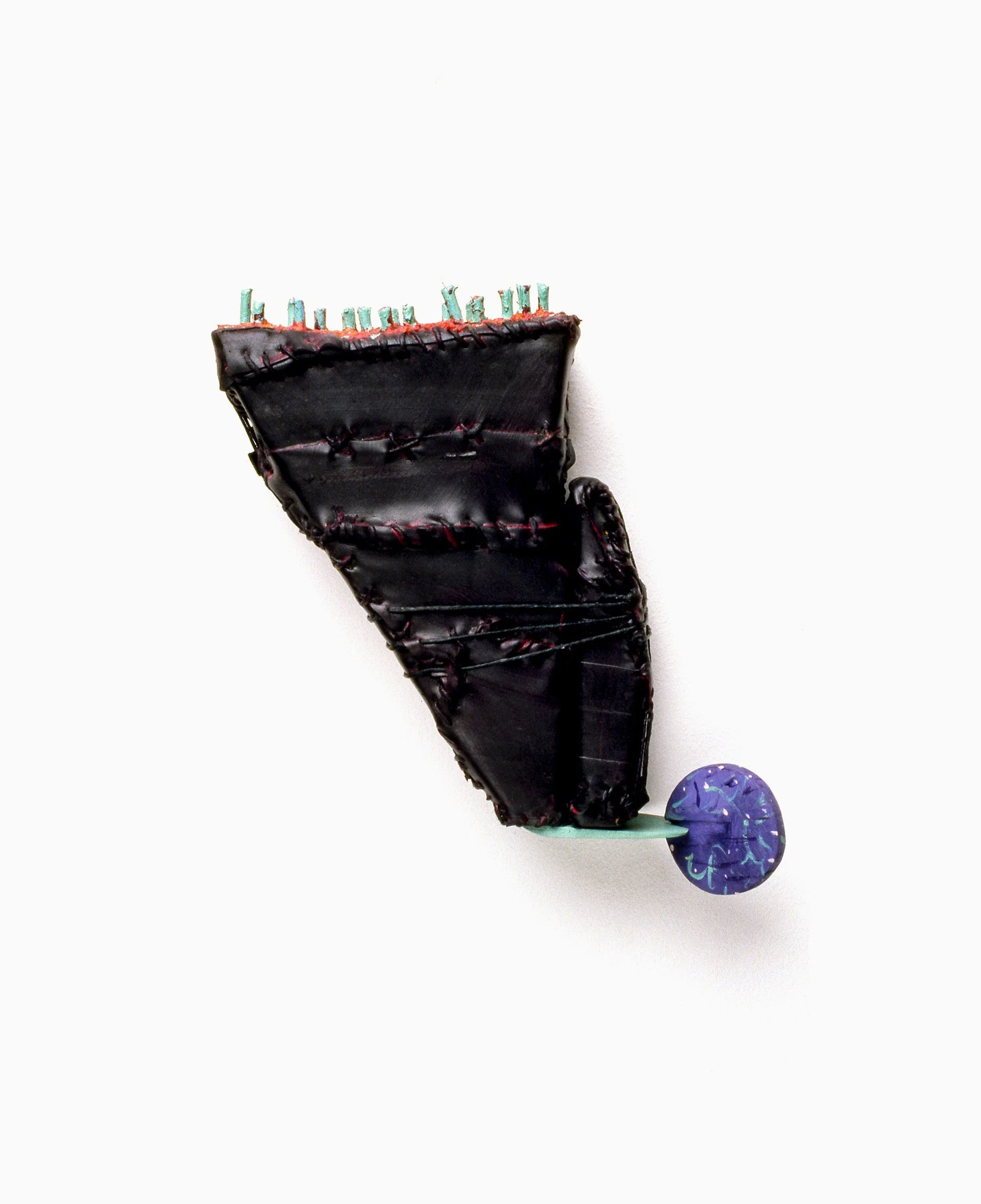 Tchotchke 380, 1980. Plywood covered with stitched bicycle inner-tube rubber and acrylic, 7 x 6 x 2”.