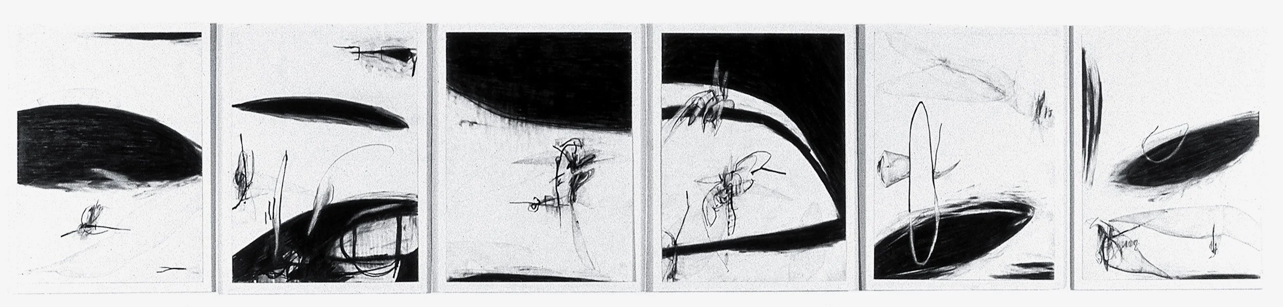 Tor, 1988. Pencil on paper, six panels, each 17 x 14”; 16 x 70” installed.
