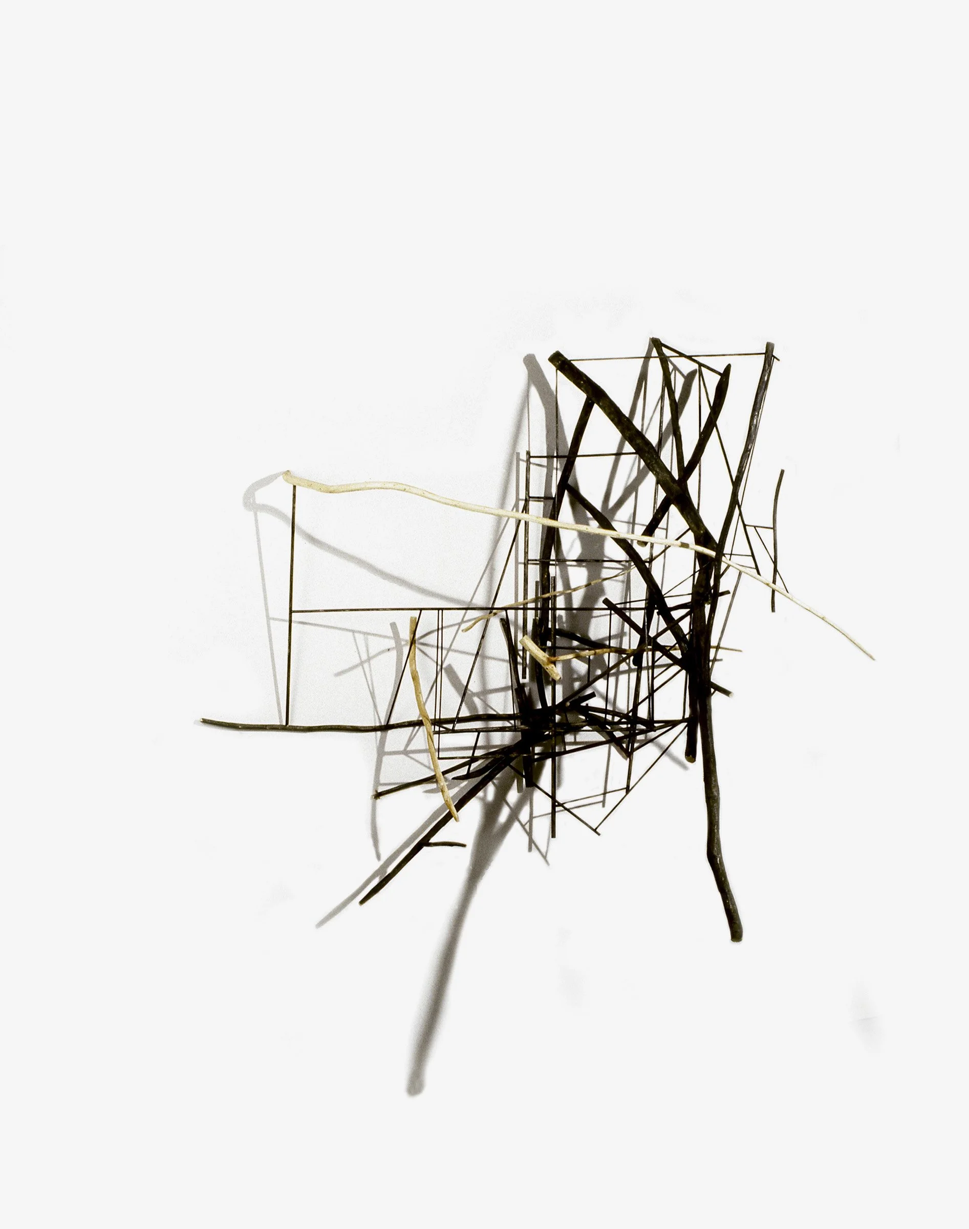Teahouse 595, 1995. Welded steel with graphite- and shellac-coated conifer branches, 73 x 22 x 18”. Private collection: New York City.