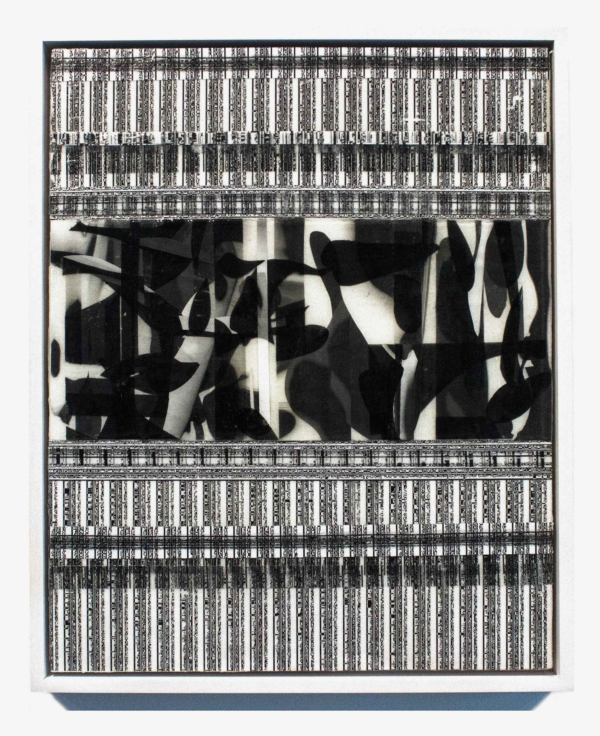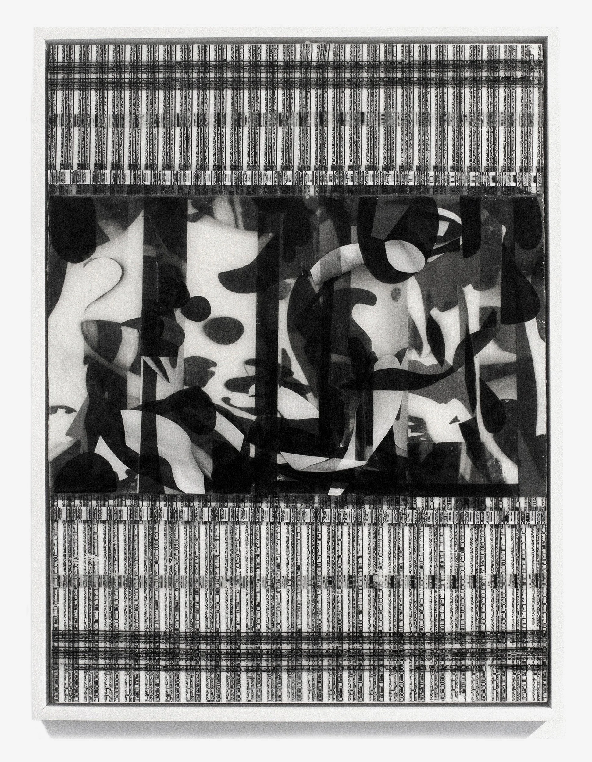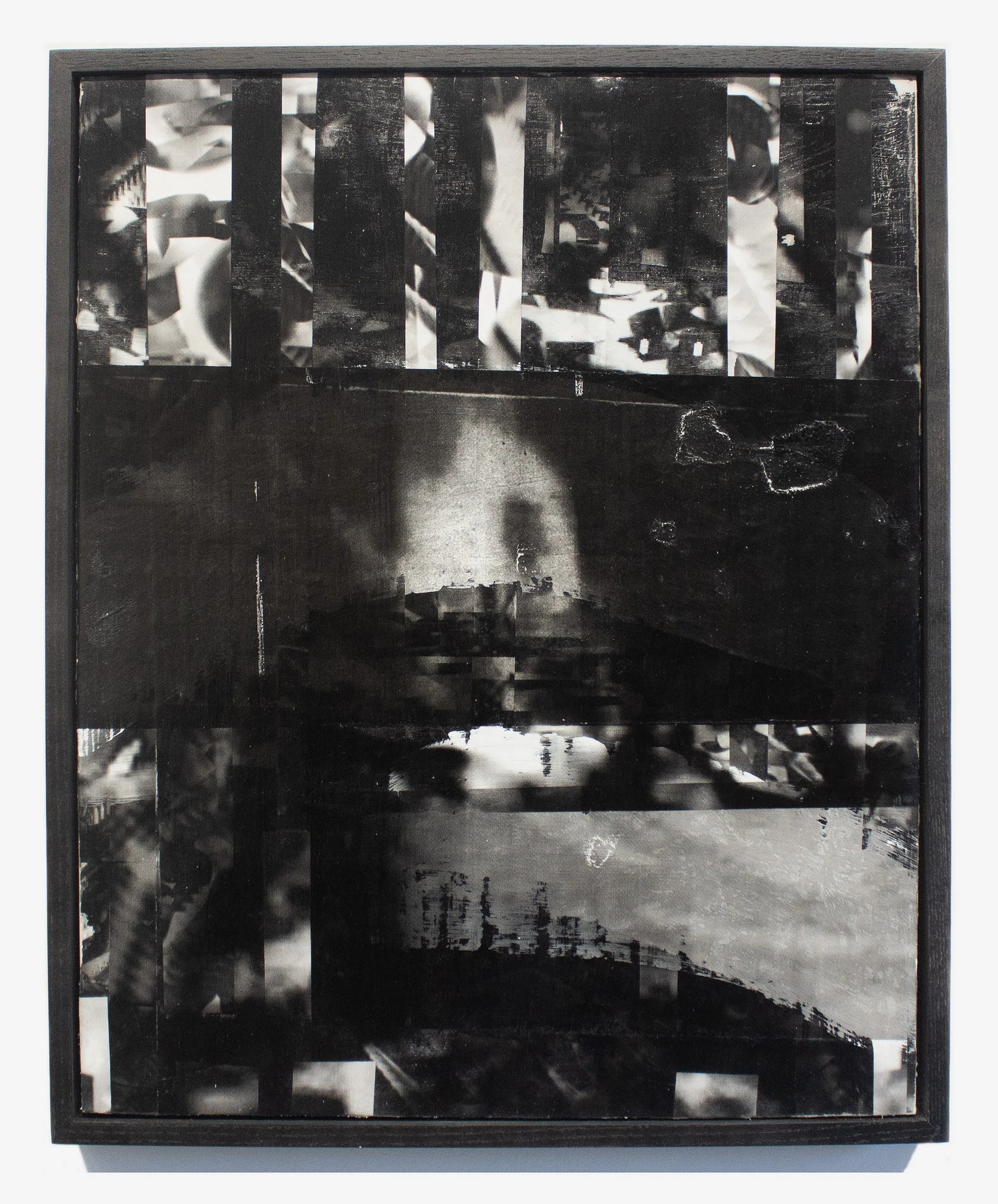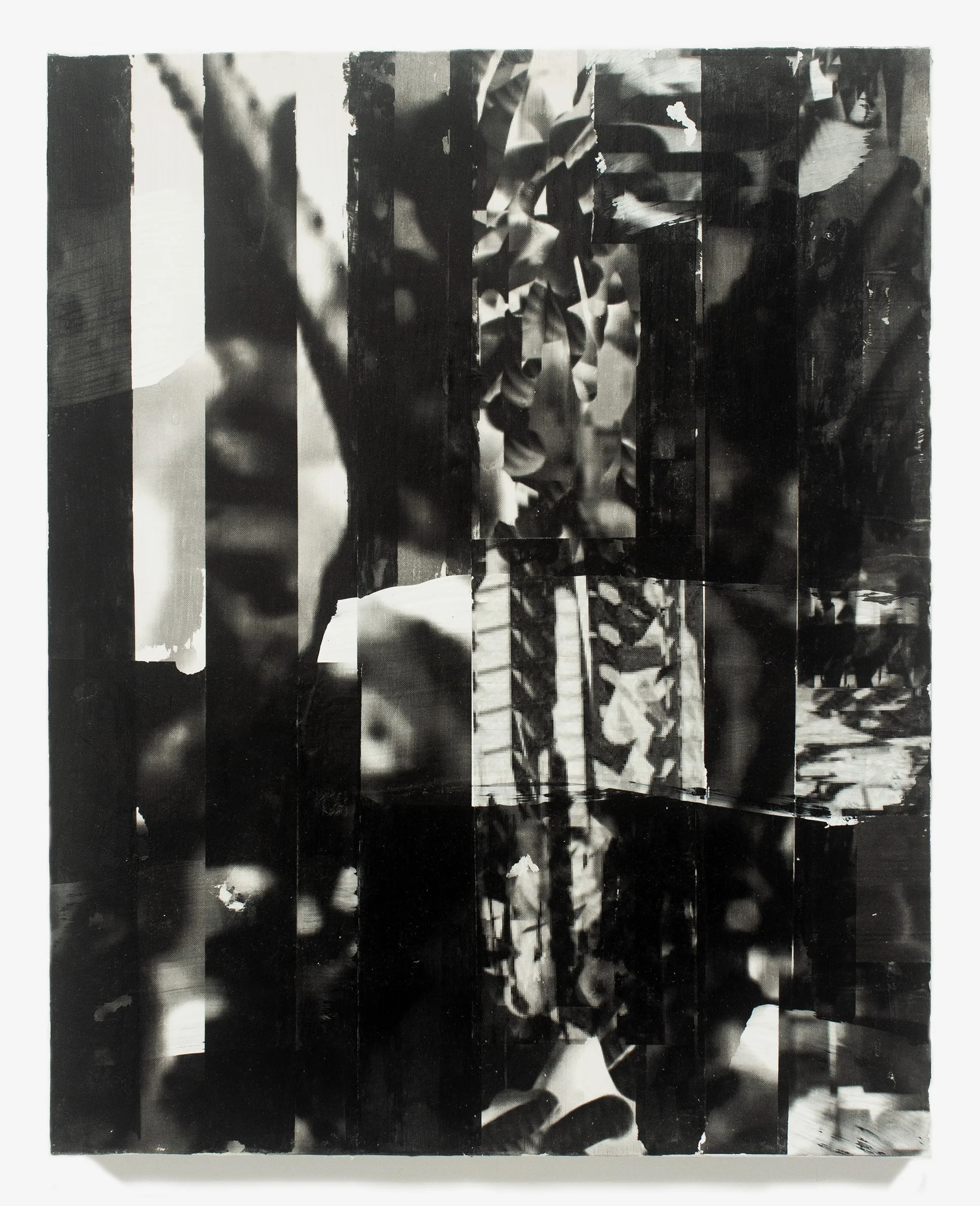 Screenplay 215, 2015. Digital transfer and paper on wood panel, 24 x 18”.