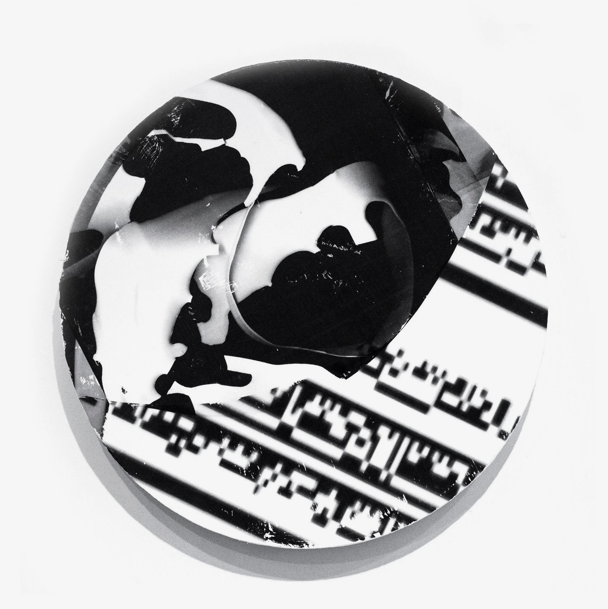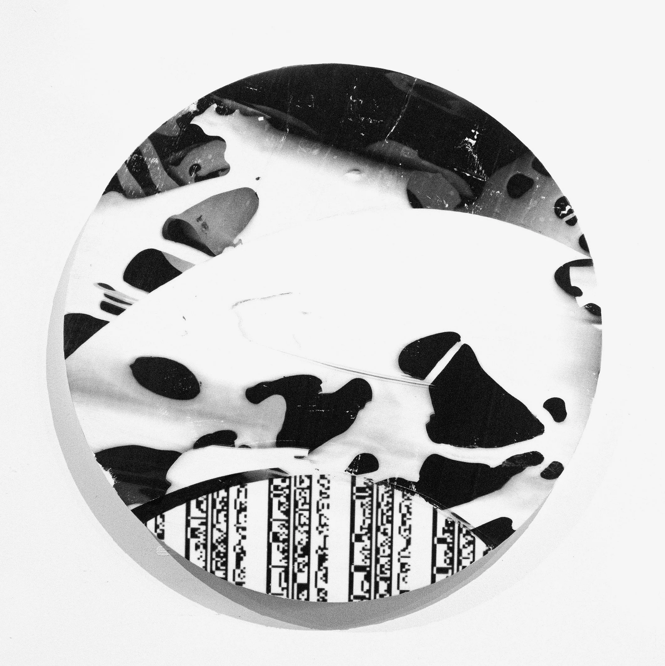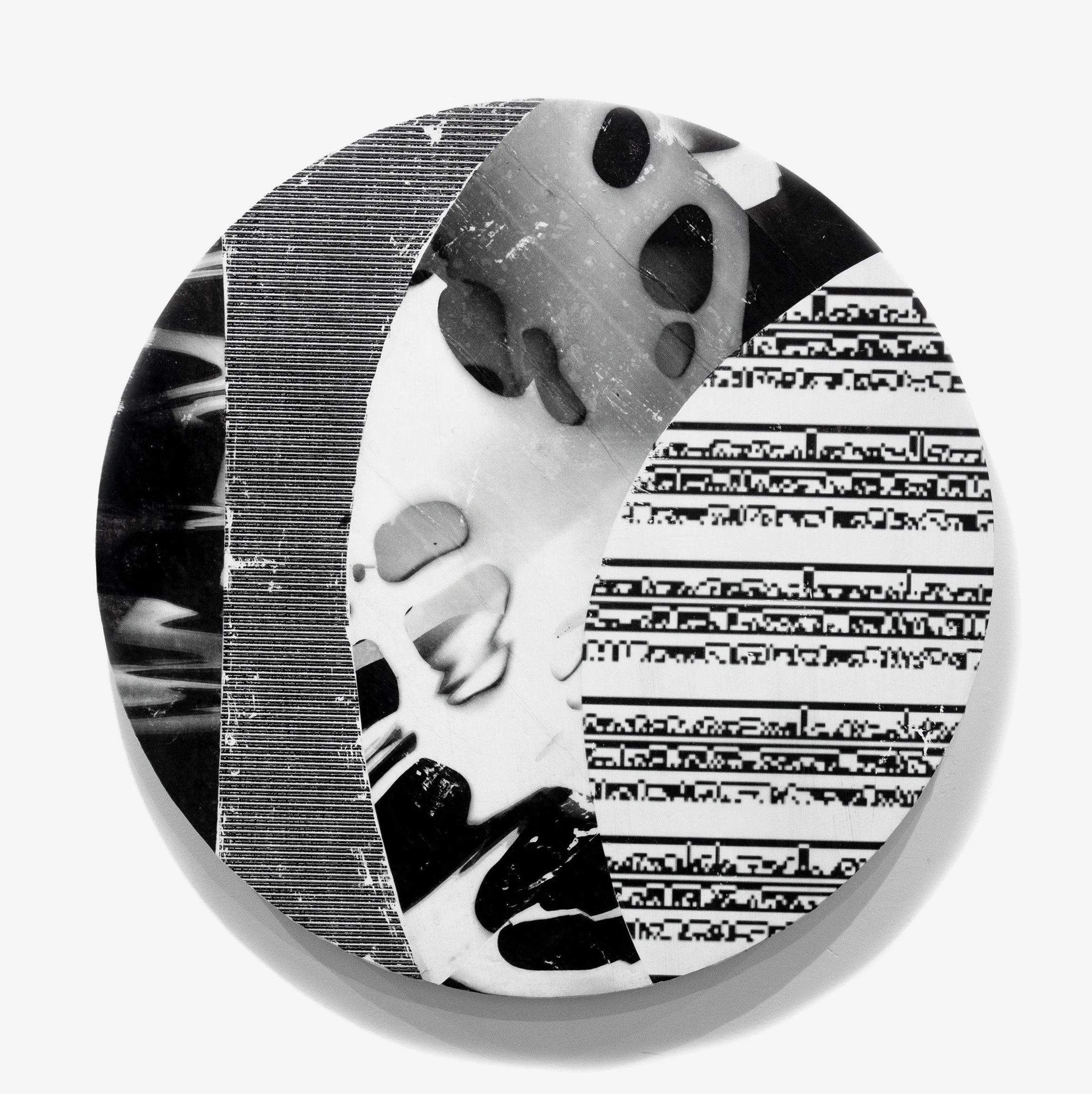 Orb 315, 2015. Digital transfer and acrylic on wood panel, 22.5” diameter.